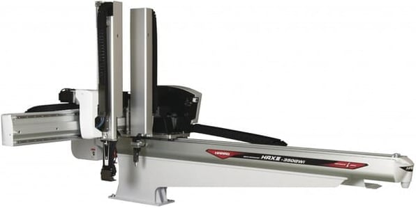 射出成形機で作られたプラスチック製品を自動で金型から取り出して指定の場所に搬送する機器