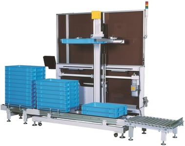- 取り出しロボット等からの成形品を受け取り、パレットを自動で交換
